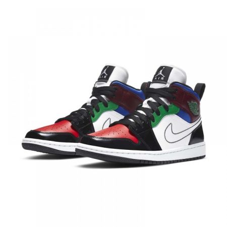 $149.00Description The women’s Air Jordan 1 Mid SE ‘Lightbulb’ showcases an array of mixed materials and hues on the upper. The design uses a white leather base, accented with patent leather detailing on the black Swoosh and blue eyestay. Suede paneling in green and yellow are applied to the toe…